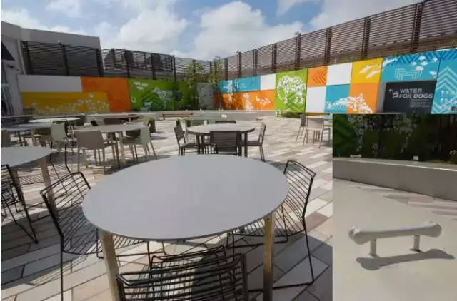 ↑木更津三井奧特萊斯購(gòu)物城是一座海濱小鎮(zhèn),很多日本人會(huì)帶狗前來(lái),這是專門開(kāi)辟的狗與主人的共同休息區(qū)——栓狗樁也很有創(chuàng)意